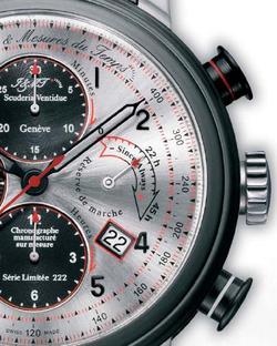 Dieser ersten Kollektion folgte eine neue Linie, die auf 222 Stück limitiert war. Ausgestattet mit einem selbstaufziehenden Chronographenwerk mit einer Gangreserve von 42 Stunden, einem Datum, 25 Steinen und einer Frequenz von 28 800 Schwingungen pro Stunde, Diese vorzeitige Uhr ist für Männer genauso gut wie für Frauen.